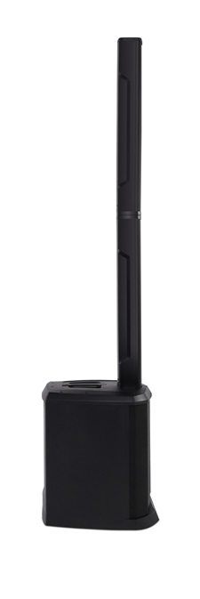 La colonna si articola in due sezioni: una “attiva” con 8 driver per le medio/alte da 7cm di diametro e un distanziale, che si agganciano facilmente alla base sub. L’altezza può essere adattata mediante l’inserimento del distanziale in base al posizionamento nei confronti del pubblico: in platea o sul palco. Il cabinet in ABS stampato con griglia metallica protegge i driver, mentre la maniglia superiore del sub e la borsa inclusa ne confermano la predisposizione all’uso portatile.