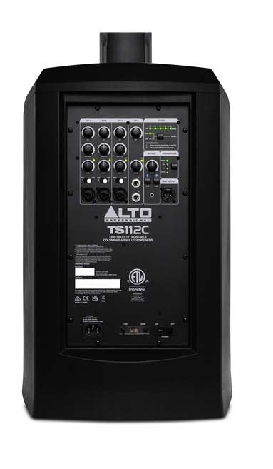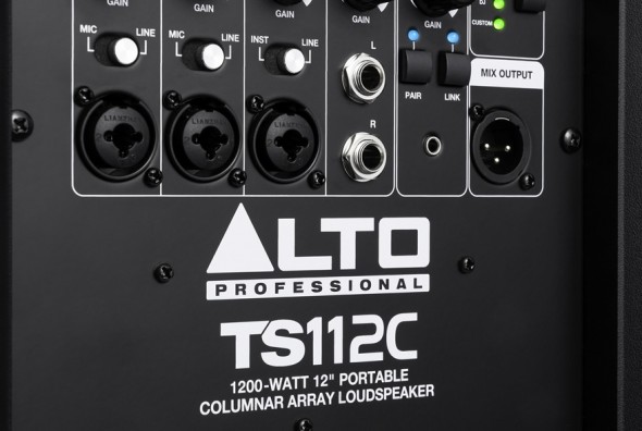 Alto Professional presenta TS112C, un diffusore a colonna attivo (1200W di picco/600W RMS), portatile, composto da una base con subwoofer da 12″, che integra un mixer digitale a 5 canali con riverbero e streaming Bluetooth.